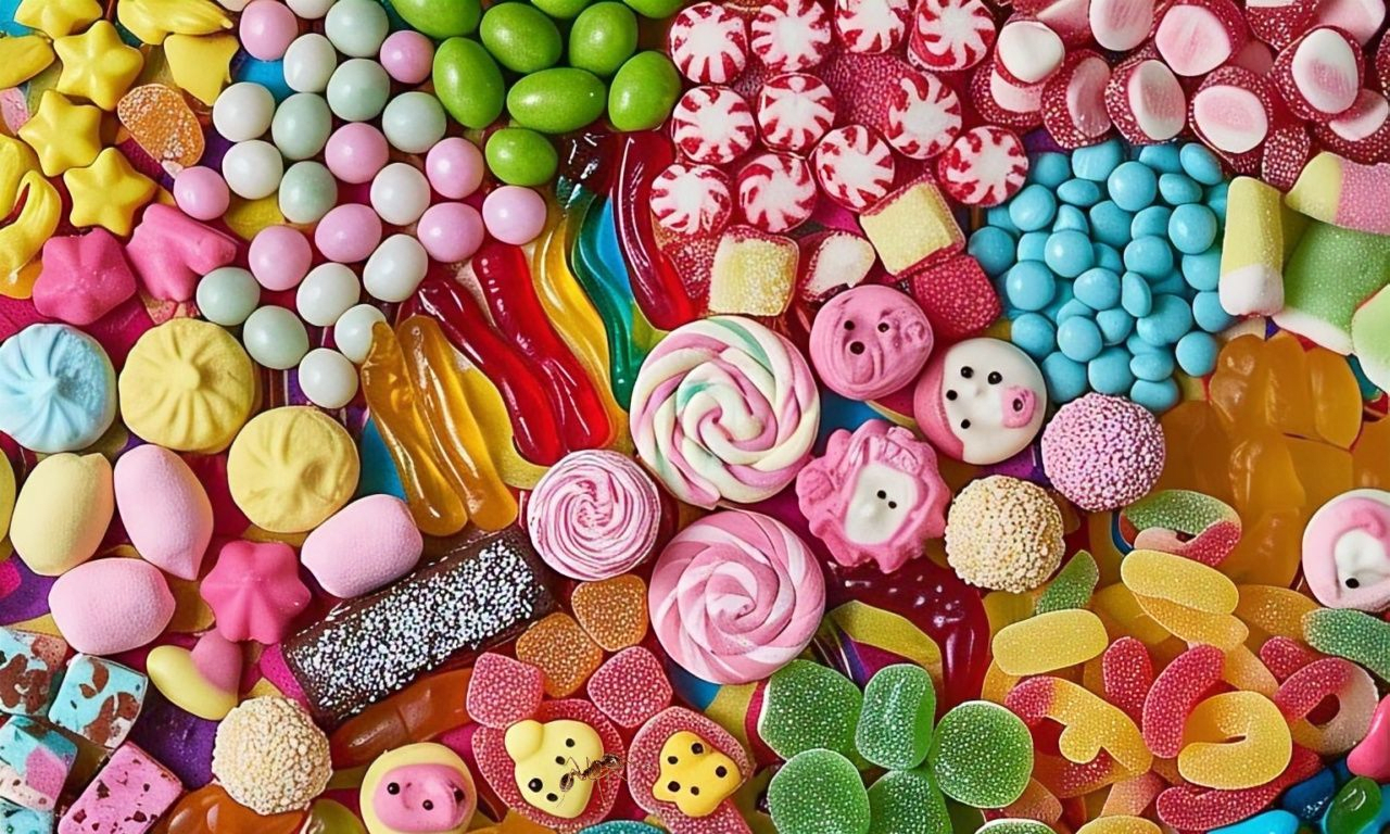 An image brimming with various colorful sweets is your playground, and within it lurks a single, elusive ant.